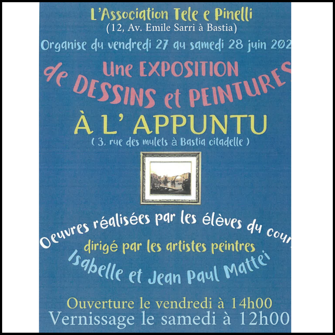 Exposition de dessins et peintures – L’Appuntu Juin 27 Exposition de dessins et peintures – L’Appuntu 27 juin 2025 à 14 h 00 / 28 juin 2025 à 18 h 00