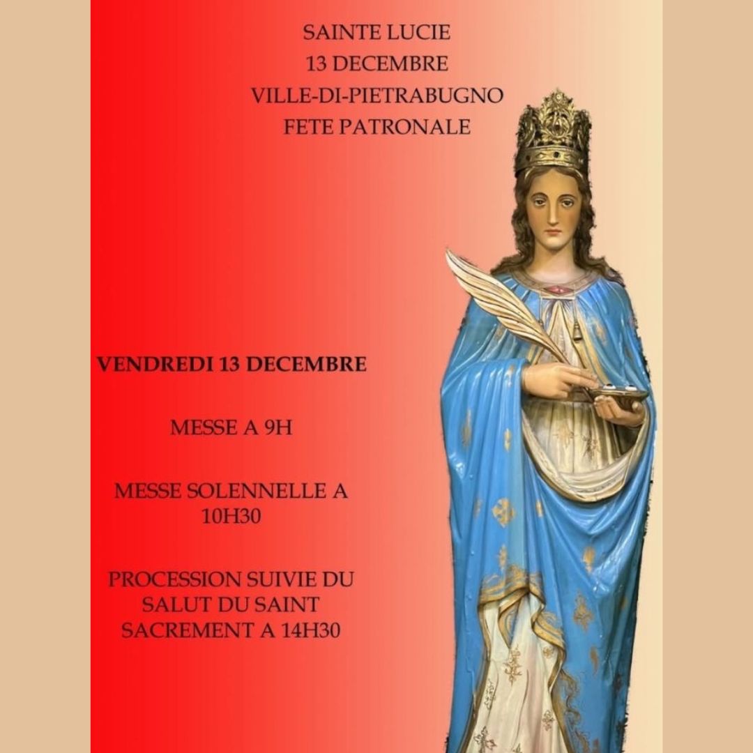 Vendredi 13 Décembre Messe à 9 h 00 Messe solennelle à 10 h 30 Procession suivie du salut du Saint Sacrement à 14 h 30