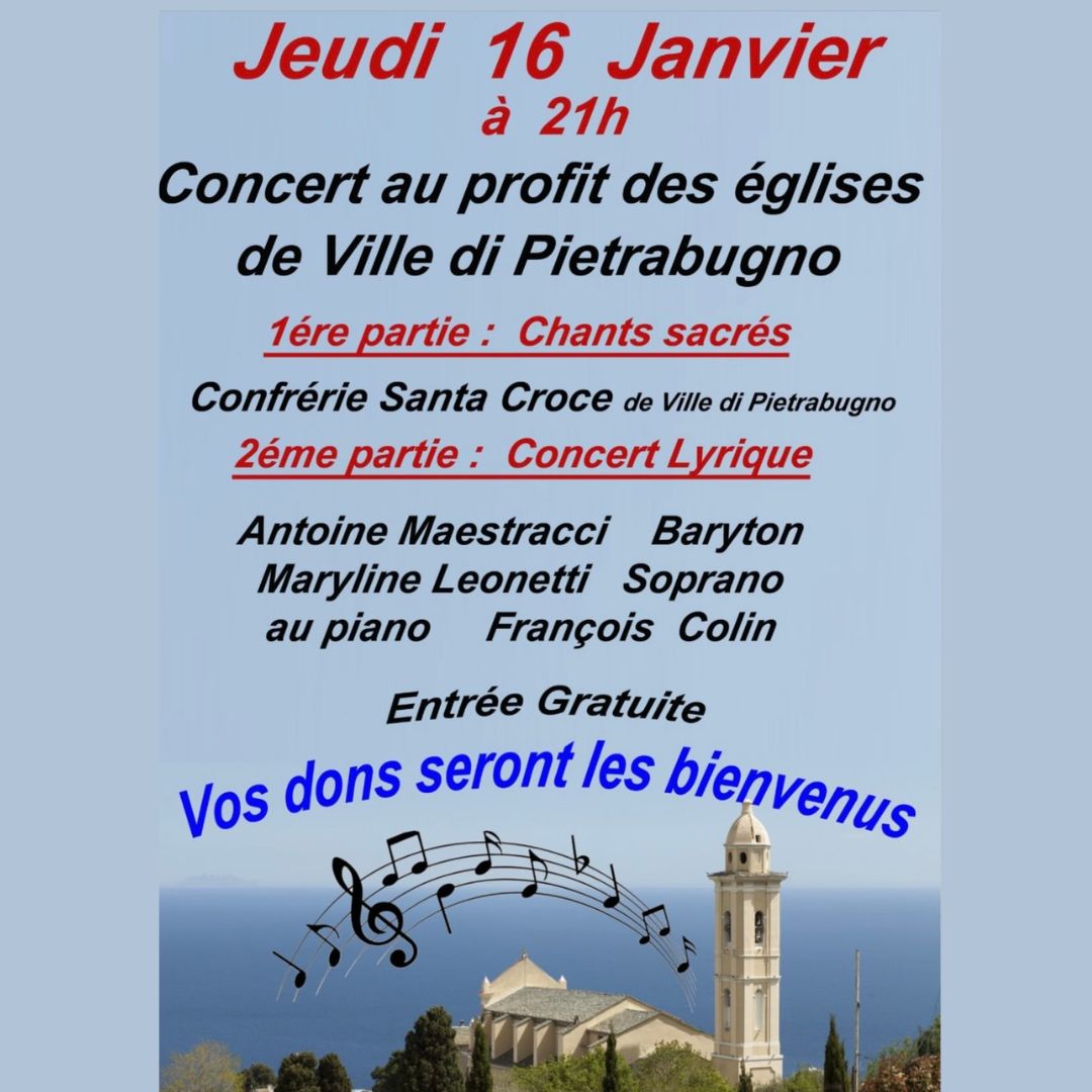 «Les Musicales » prennent de la hauteur… Samedi 20 novembre à 15 h en l’église Santa Lucia - Ville di Pietrabugno « MUSIQUE SACRÉE ». « La voix en majesté » avec Claire et Bertrand Cervera, et l’orchestre Paris Classik. Avé maria…Oratorio…