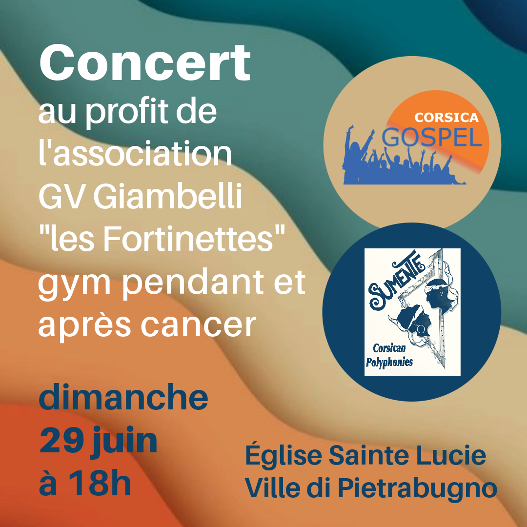 Concert au profit de l'association GV Giambelli "Les Fortinettes" gym pendant et après cancer. Corsican Gospel Sumente Eglise Sainte Lucie - Ville di Pietrabugno